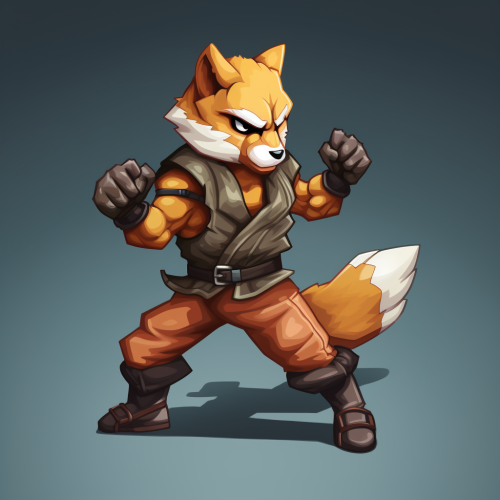 2D game pixel art for fighting game, a piel strong image, (pixel art of a fighting animal fox), full body view, fighting pose, there is only one person in this place, no background,