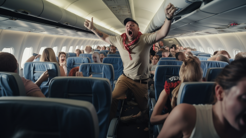 humanoid Caracal pushes humanoid gorilla from plane wing there are thunderstorms and caracal has evil laugh and gorilla is screaming