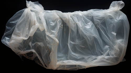 3D render in high resolution: a plastic young tree, a sapling, standing in the middle of a vast empty space. A clean white background with no objects or details, creating the impression that the sapling is floating in the air. The horizon is not visible. Studio lighting highlights the object well. The sapling is elegant, with drooping shoots and a wavy white trunk --ar 2:3