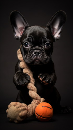 a french bulldog that is the same colours like stitch from lilo & stitch, realistic