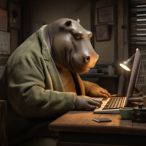 An enchanting children's game screen with a jungle theme, showcasing a lovable hippopotamus as the central character, surrounded by interactive elements, animated jungle flora, and playful background elements, creating a visually stimulating and delightful gaming environment, Artwork, vector graphics with a mix of 2D and 3D elements, --ar 16:9 --v 5.0