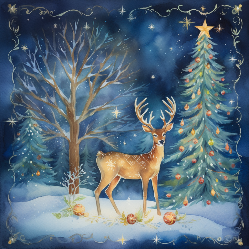 Photo: A cozy blanket with a deep blue background showcasing a beautifully decorated Christmas tree adorned with twinkling LED lights and shimmering ornaments. Soft snowflakes gently fall around the tree, and a brown reindeer stands beside it, looking up at the star on top of the tree. The bottom edge of the blanket has a pattern of candy canes and holly leaves. Watercolor painting: A warm, crimson blanket featuring Santa Claus on his sleigh soaring across a star-studded night sky. The silhouette of a snow-covered village can be seen below, with lights shining from the windows of little houses. The edges of the blanket are decorated with a pattern of golden bells and red ribbons. Photo: A pastel pink blanket displaying an array of Christmas baubles in red, green, and gold colors, intertwined with snowy garlands and golden jingle bells. There are also images of wrapped gifts and mistletoe scattered throughout the blanket's design. Illustration: A vibrant green blanket that showcases a playful scene of snowmen, wearing scarves and top hats, building a snow fortress. Playful penguins wearing Santa hats can be seen sliding down snowy hills. The borders of the blanket have a pattern of snowflakes and gingerbread men. --v 5.0 --s 250