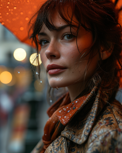 whimsical Parisian café in the rain, cozy outdoor seating covered by colorful umbrellas, warm light glowing from vintage lanterns, patrons enjoying pastries and coffee, cobblestone streets glistening under a light drizzle, composition highlighting the romantic ambiance of urban life, invoking feelings of nostalgia and charm, executed as a photorealistic image with a Canon EOS R5, 24mm lens, focusing on the intricate details and the lively atmosphere of the city. --ar 16:9