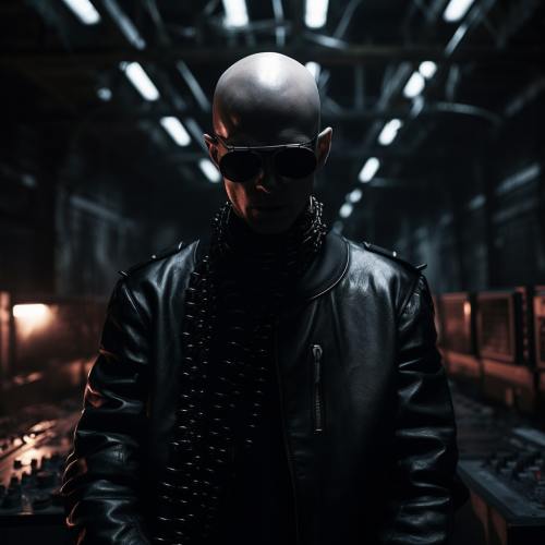 a picture of bald techno raver with black clothes and piercing, dancing in a dark underground rave, in the style of night photography, post-punk diy, subtle luminosity, celebrity and pop culture references, minimalist imagery, quiet potency, film noir-inspired