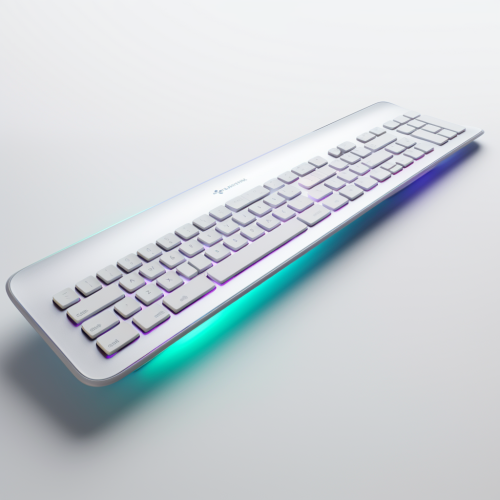 minimal keyboard design inspired by logitech, realistic, white background, partially transparent, futuristic
