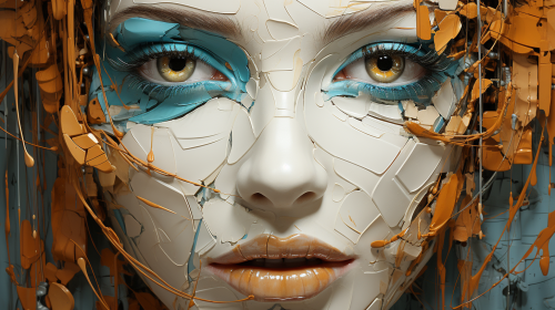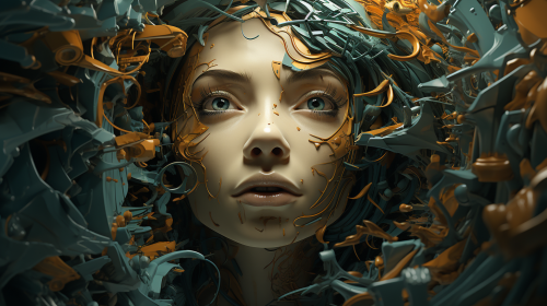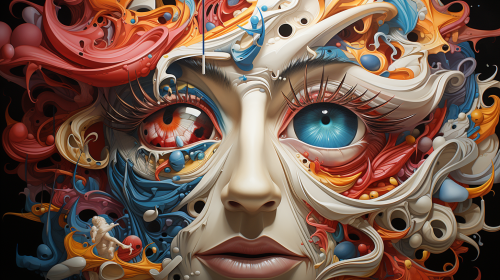 distorted face::1 with multiple facial features, dynamic, fast, speed, surreal --s 1000 --ar 16:9 --c 1