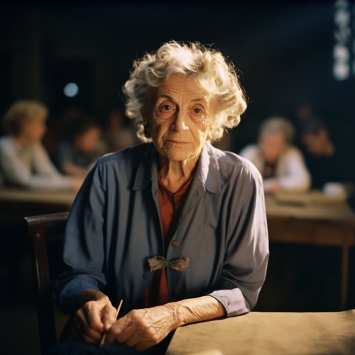 The portrait captures only the face of the elderly woman, with a particular emphasis on how it is subtly distorted by the memories and emotions evoked by the essay she watches unfold on the screen. The greenish glow of the monitor--Fern-Green--casts an eerie, almost unnatural light across her features, blending reality with the echoes of her past. Her eyes, once hazel, now appear as deep pools of shadowed green, their irises slightly enlarged and distorted, as though they are struggling to contain the flood of memories the screen is drawing out. The green light creates a ripple effect in her eyes, giving them a glassy, almost otherworldly quality, as if the images she watches are not just before her but within her, distorting her very perception of the present. The wrinkles and creases on her face, normally a testament to age and experience, are exaggerated in this portrait. The lines seem to carve deeper into her skin, as though etched by the very struggles and sorrows the essay recounts. The green light accentuates these lines, causing them to twist and warp, almost as if her face is being pulled in multiple directions by the weight of her memories. The sag of her skin is more pronounced, giving her face a slightly elongated, stretched appearance, reflecting the internal tension and turmoil she feels. Her lips, usually thin and tight, now appear slightly uneven, one corner pulled higher than the other, as though caught in a moment of suppressed emotion. The green light causes the skin around her mouth to tighten and crack, adding to the sense of distortion. The tension in her jaw is more visible, with the muscles subtly exaggerated, as if she is clenching her teeth against the memories that the screen forces her to confront. Her silver hair, pulled back, is [...]