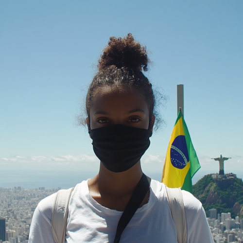 upper body portrait of a beauitiful brazilian woman in rio de janeiro intensely starring at the camera lens::1 , clear facial features::1 , show full body, cinematic::1 , 35mm lens, f/1.8, accent lighting, global illumination --v 6.1 --ar 4:7