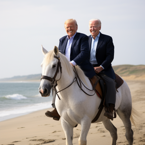 Isreal at war with Hamas, Donald Trump and Joe Biden appear as a super hero duo to save the day and unite the world --v 5.2 --ar 16:9