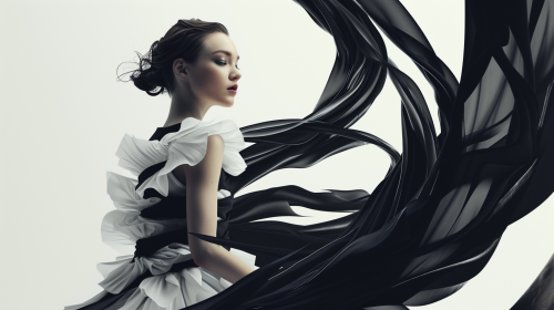 Ein Cover für ein Lifeytyle magazine, dass eine Frau mittleren Alters mit mittellangen schwarzen Haaren zeigt, Style ist High Fashion, black and white