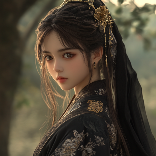 Pretty girl in Chinese Royal Style outfit with butterfly.