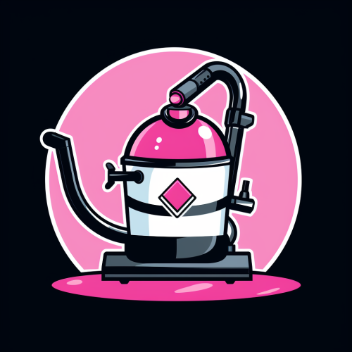 logo with funny, standing vacuum cleaner; black, pink, white; lineart, svg, NBA like logo