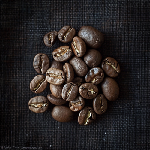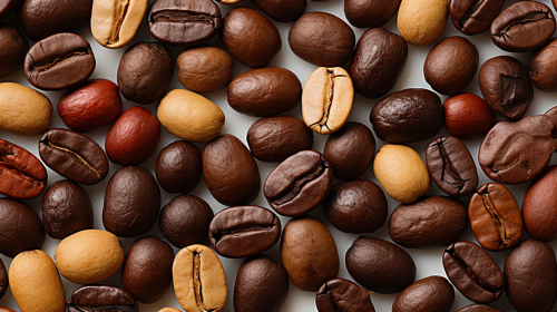 a professional photograph of somecoffee beans, white background, top view, realism, realistic, focal length 150 mm --v 6.0