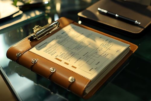 A detailed mortgage application form placed on a contemporary desk, with a premium calculator and a stylish pen, symbolizing the organization and precision required in the home loan process. The clean setup suggests a well-prepared and thoughtful approach to home financing. Photorealistic, realistic image, 8K resolution --ar 3:2 --v 6.1 --style raw