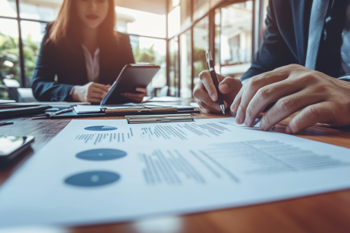 Real-life image of a printed document with bold headings outlining contract terms, arranged on a clean table with a sleek pen and notepad, conveying clarity and structure in a business setting. Photorealistic, realistic photo, 8K resolution --ar 3:2 --v 6.1 --style raw