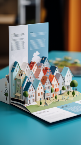 paper pop up brochure inside there are two cutout paper man holding a cell phone, for insurance company, full HD, taken on a Canon EOS R5 F1. 2 ISO100 35MM, high - resolution 16k, high - resolution format to ensure optimal visual quality and clarity --ar 16:9