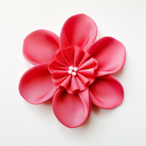 a plain and simple fabric flower with five petals, a cog in the center, pale red color, on white background