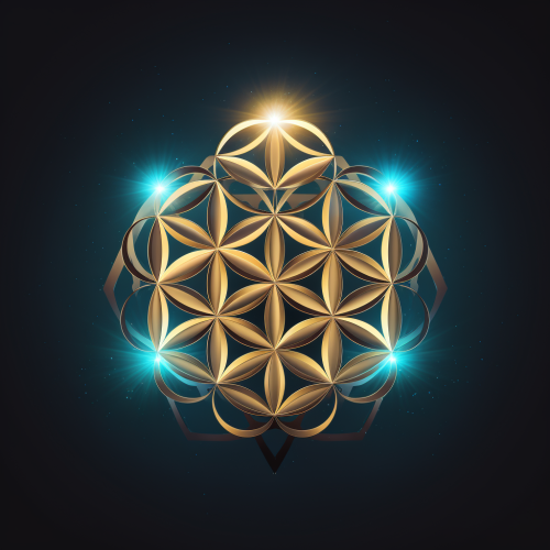 Professional logo for therapy center: Flower of Life, sun, moon, stars.