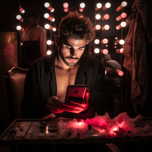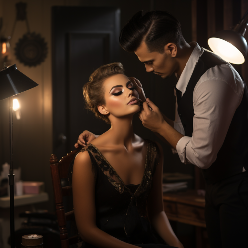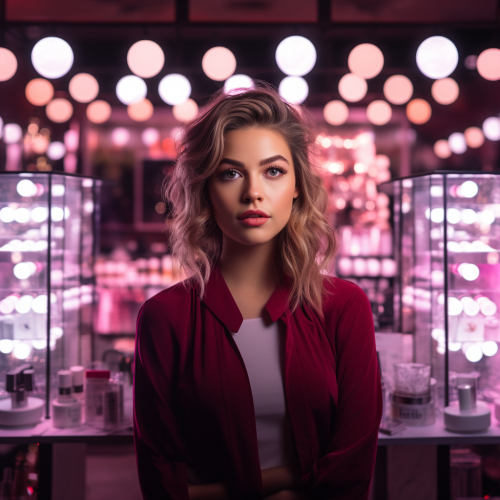 a pretty photograph of a professional makeup artist imagining buyer personas - low-fi aesthetic, commercial photography, cool lighting scheme