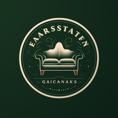classic lettering logo for an upholstery cleaning brand, with a minimalist green sofa, water drops on the screen