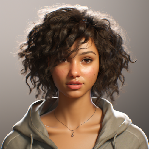 Photorealistic style female avatar, 25 years old. She is facing the viewer as if for an interview. She has a mixed - race appearance and short curly dark hair.-- v5.2