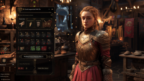 screenshot of menus in the Game of Thrones rpg, gameplay screenshot, inventory screen, in-game, amazing graphics, next gen graphics, ray-tracing, --ar 16:9 --v 6.0