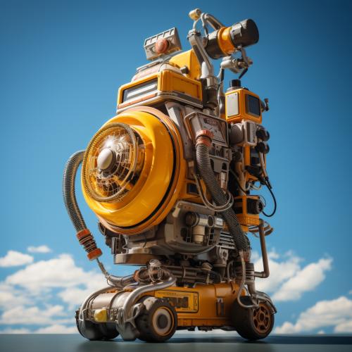 Broom with a comedic electric hover engine, complete with dials and buttons, floating against a blue sky, hyperrealistic style, Sony A7R IV --s 250 --style raw