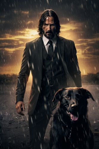 John wick and neo in an epic fight for the fate of the world, epic composition, hyper realistic photography, outside in a thunderstorm, wide angle movie shot --v 5.2 --ar 2:3