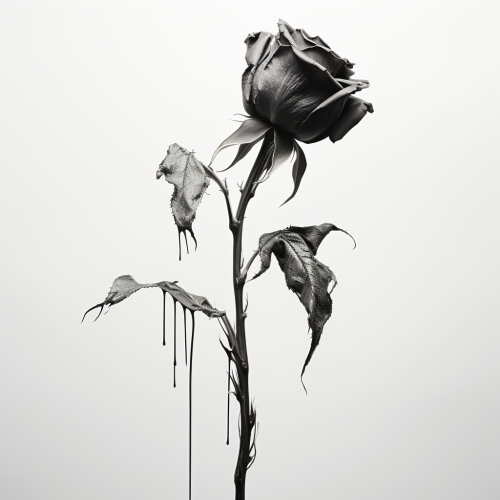a flat white on black illustration of a single rose with no shading, to be placed on the packaging of a very expensive luxury perfume bottle --ar 2:3