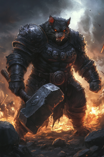 4K anime style quality, digital drawing mode, medieval fantasy-themed anime male humanoid rat character wearign armor, weilding a war hammer on a mideval battlefield, evil large orgre, perfect anatomy, 4K, determined and fierce, thick, athletic, large brown eyes, depth of field --ar 2:3
