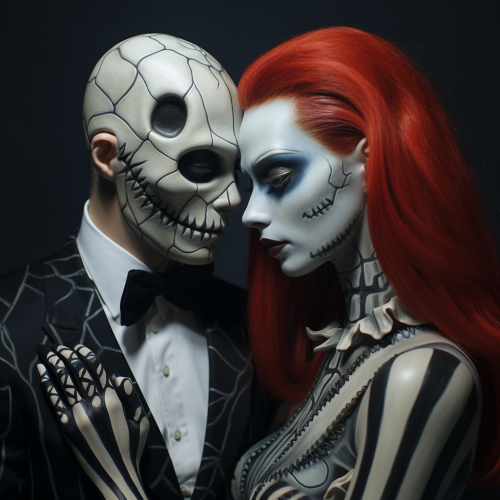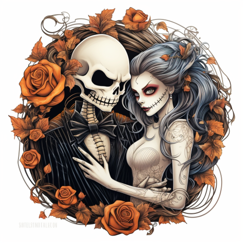 Jack skellington and Sally Halloween::Oktober sticker, white background, --v 5.2