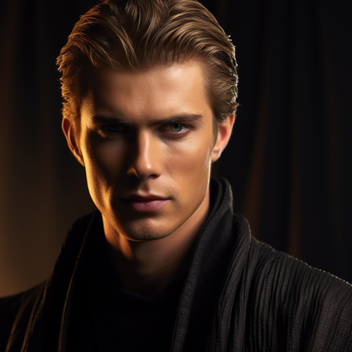 high quality portrait of anakin skywalker played by Hayden Christensen, cinematic, photorealistic, closeup of Anakin, wearing black jedi clothing, ar 3:2