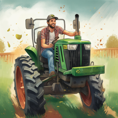 luke bryan driving a fendt tractor children's book illustration style --v 5.0