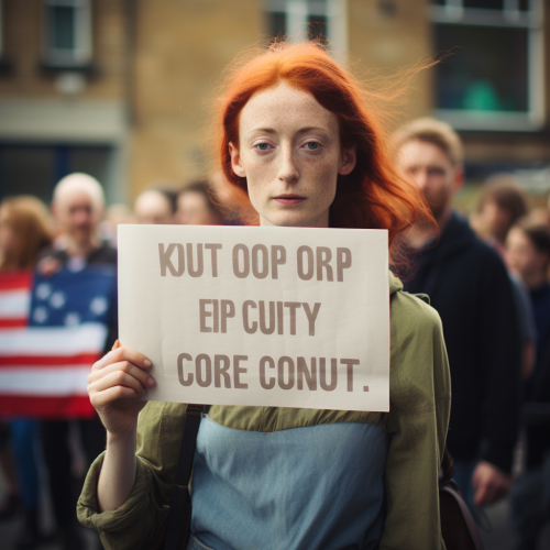 Clare Daly holding a poster saying "Keep our country out of your mouth"