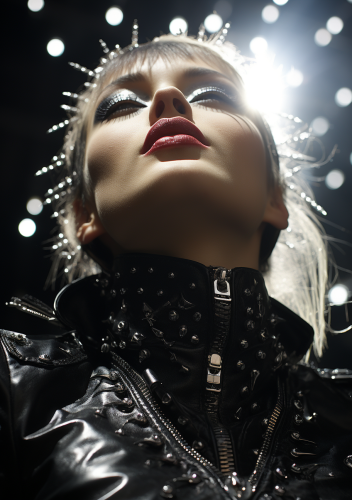 Close-up of Angelic Punk Woman in Shiny Leather