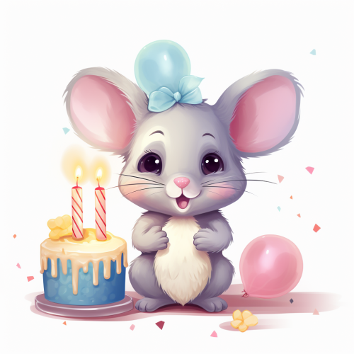 a cute mouse having a birthday party, big ears, realistic --style raw