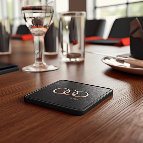 Red and gold braided cord coasters on Christmas table.