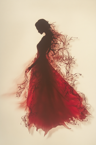 Paper cut, red, silhouette with clearly visible contours of the body, well-proportioned woman in tight clothing, veiled, mysterious --ar 2:3 --p ie82c22 --v 6.1