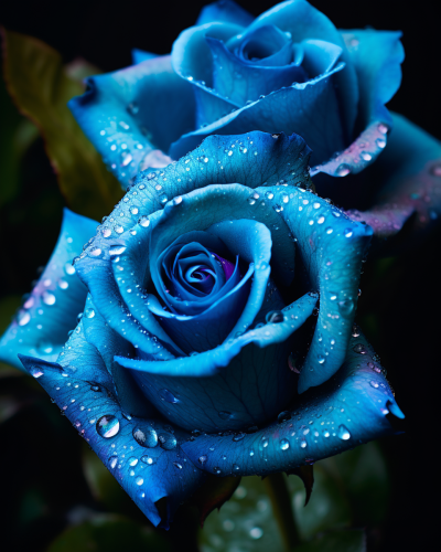macro photography, beautiful, perfect iridescent blue and turquoise roses, f-stop 1.2, shallow depth of field, clean sharp, macro photography, no water, droplets --ar 4:5 --style raw --s 50