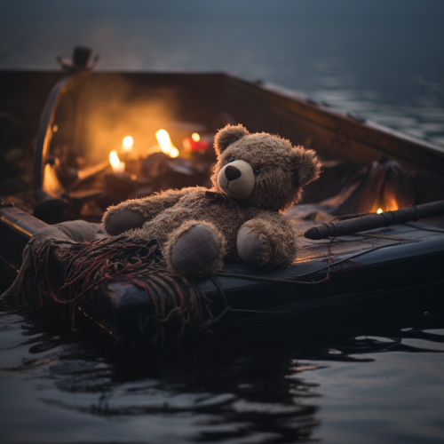 a muslim lady wearing full black covered clothes, sitting next to a grave which is on the floor without any noticeable elements, moody, dramatic dark blue color, 8D, Ultra realistic, --ar 16:9