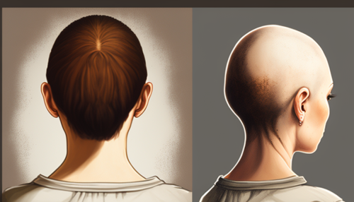 a realistic picture showing the back of a small hair growth, woman with hair loss, alopecia, in the style of meticulous realism, loose, gestural strokes, spot metering, realistic brushwork, rounded, deconstructive --ar 16:9 --v 4
