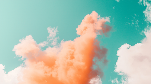 Orange clouds and green clouds are floating in the blue sky. The scene is enhanced by cinematic studio neutral lighting, emphasizing a professional and sophisticated environment. Styled like a high-quality architectural photograph from Shutterstock, Getty Images, Pexels, or Unsplash. --ar 16:9 --q 2 --style raw --v 6.1 --s 50