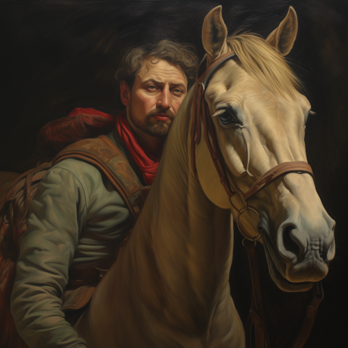 Captured through the lens of photography with a 35mm focal length, the "GlowHorse" logo materializes, showcasing LED safety lights for horse riding. Imagine a meticulously composed photograph capturing the essence of elegance and safety. The LED lights drape down the tail of the horse like vines. The horses, illuminated by a soft, natural light, radiate a gentle glow against a dusky backdrop. The color temperature leans towards warm tones, conveying a sense of warmth and security. --v 5.0 --stylize 1000