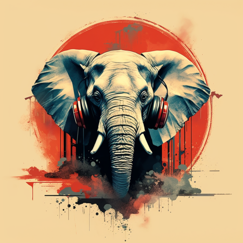 a stunning art print of an elephant done in the style of record cover album retro 70s vibe