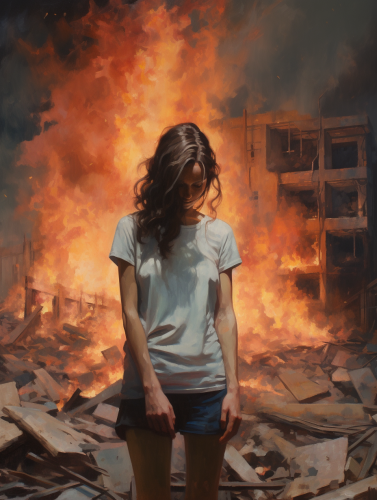 figurative oil painting of the collapse of the housing market in the style of Sam Spratt and Zoey Frank --ar 3:4