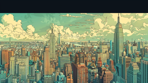 cityscape, epic skyscrapers, monumental, illustration by ed piskor --ar 16:9