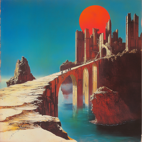 a world where power suddenly goes off and only a few survive. It’s 40 years later and remaining humans are deciding what to do. This song is titled no reason at all and I’d like it in the style of Roger Dean’s album covers