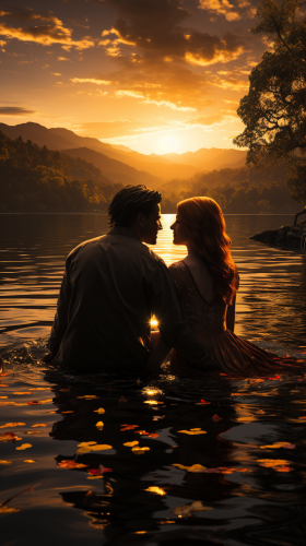 couple , minimum body coverage ,love, half body in the water, lake, photorealistic, 8k, natural lighting, HDR, high resolutions, shot on IMAX Laser, intricate details, --s 750 --ar 9:16