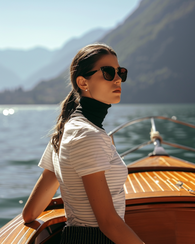 Lovers on a boat at golden hour in Lake Como