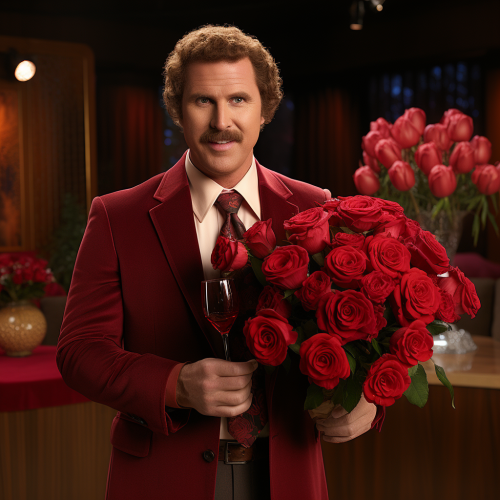 ABC new show “The Bachelor” Where the next man looking for love is will ferrell as ron burgundy holding roses